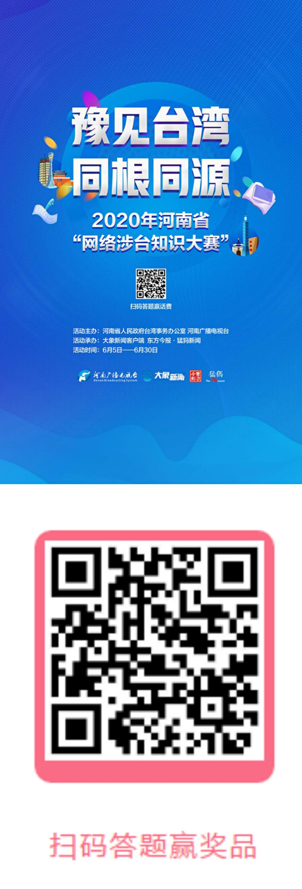 為及時(shí)幫助廣大干部群眾正確掌握中央對(duì)臺(tái)方針政策,了解當(dāng)前臺(tái)海形勢(shì),正確看待臺(tái)灣問(wèn)題,全面掌握涉臺(tái)知識(shí),6月5日,由河南省臺(tái)辦、河南廣播電視臺(tái)主辦,大象新聞、東方今報(bào)承辦的“豫見(jiàn)臺(tái)灣 同根同源”——2020年河南省網(wǎng)絡(luò)涉臺(tái)知識(shí)大賽拉開(kāi)帷幕。
