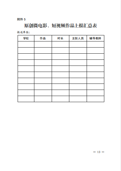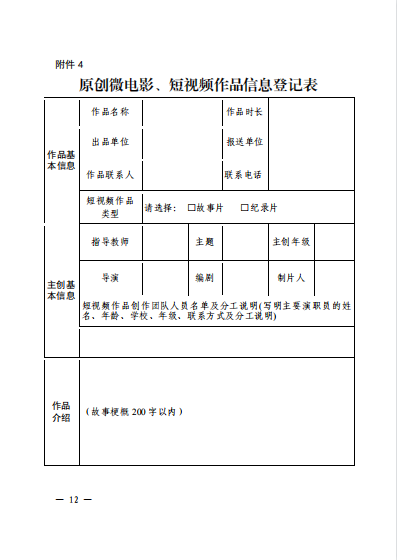 以各總支為單位擇優推薦原創微電影、短視頻作品不少于1部,5月24日前將推薦的作品優盤,以及《原創微電影、短視頻作品信息登記表》(附件 4)、《原創微電影、短視頻作品上報匯總表》(附件5),按要求加蓋公章,同時將表格電子版、視頻百度網盤鏈接發送到指定郵箱jzdxxcb@163.com。
