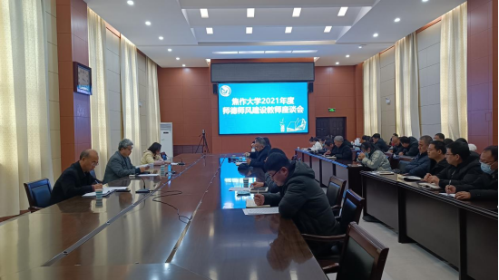 符德學對大家的發言及提出的意見和建議給予充分肯定。他表示,學校持續推進師德師風建設工作,堅持把師德師風工作融入教師成長發展的各個環節,著力營造尊師重教的濃厚氛圍,堅持嚴管與厚愛統一,努力建設一支政治素質過硬、業務能力精湛、育人水平高超的高素質教師隊伍。并對教師提出三點要求:一是提高政治站位,堅定政治信仰;二是爭做有理想信念、有道德情操、有扎實學識、有仁愛之心的‘四有’好老師;三是立德樹人,德法兼修,做一名高素質的教師。