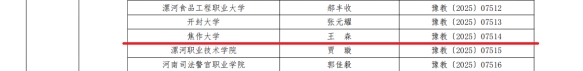 近日,河南省教育廳公布了第二屆全國大學生職業規劃大賽2024年河南省賽獲獎名單。我校化工與環境工程學院黃佳楠同學榮獲成長賽道職教組金獎,人工智能學院周嘉惠同學榮獲就業賽道職教組銀獎,人工智能學院王森同學榮獲成長賽道職教組銅獎,學校榮獲“優秀組織獎”。