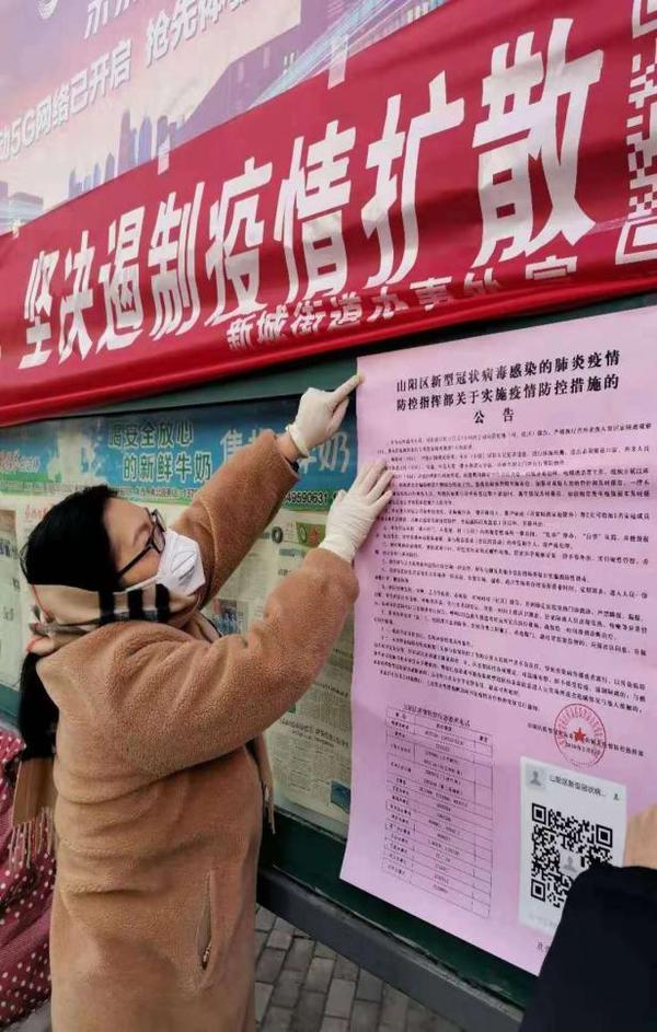 志愿者張貼抗疫公告
