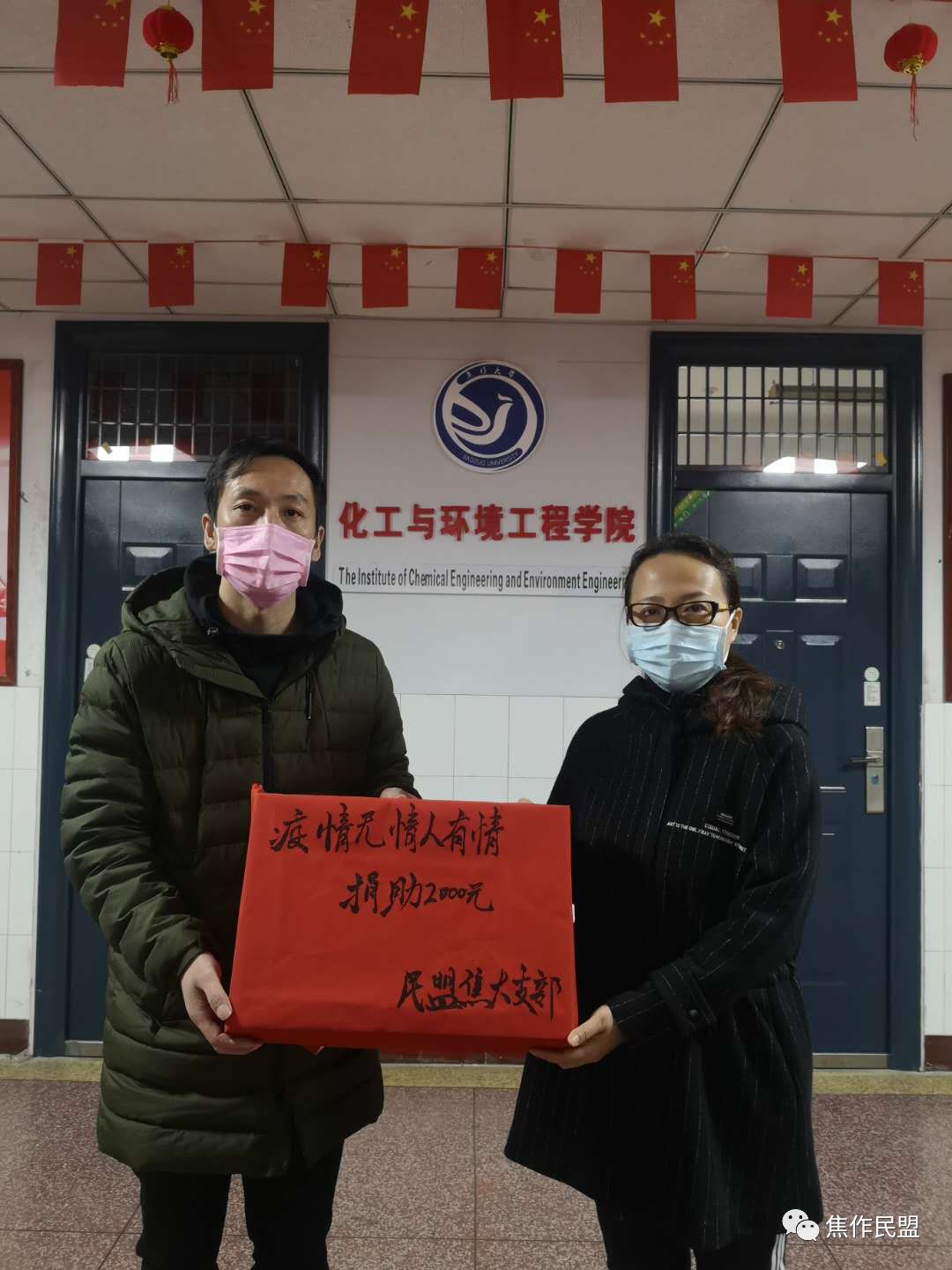 調研中,化工學院2020屆貧困畢業生宋某某的情況引起了民盟焦作支部主委、焦作大學招生就業處副處長李憲的注意。宋同學父母疾病臥床,弟弟年幼,她是家中唯一的勞動力,現在卻因疫情影響,無法外出實習工作,沒有了經濟來源的家庭愁云密布。李憲和支委成員研究后,在支部盟員中發起了捐助號召,盟員們紛紛慷慨解囊,共籌得2000元捐助款。3月9日,通過宋同學的班主任,這筆捐助款交到了宋同學的手中。宋同學拿著善款,感動地流下了眼淚:“雖然,這場疫情無情,讓家里的生活進入了無情的寒冬,但各位老師對我的關心又讓我在這寒冬里感受到了春天的溫暖,我會努力成為一名優秀的焦作大學畢業生,有所成就后一定會報答母校,回報社會。”
