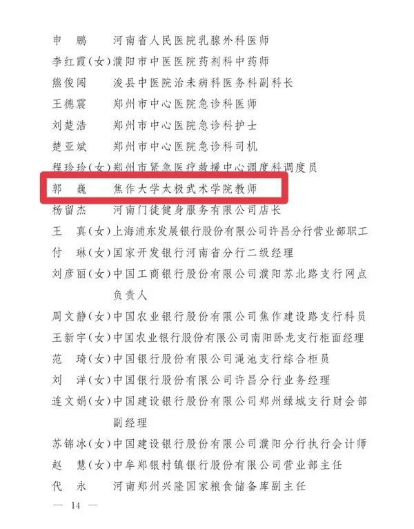 2020年05月02日,焦作日報校園之聲以《優秀!焦作大學郭巍老師榮獲河南省五一勞動獎章!》為題,對我校太極武術學院教師郭巍榮獲河南省五一勞動獎章進行了報道。內容如下: