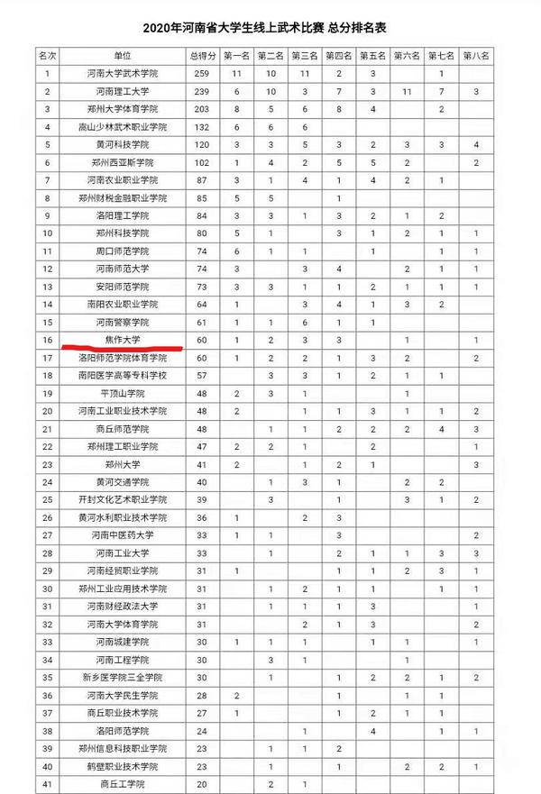 2021年1月4日,大河網以《焦作大學在2020年河南省大學生線上武術錦標賽榮獲佳績》為題,對校太極武術學院在“2020年河南省大學生線上武術比賽”中獲得佳績進行了報道。內容如下: