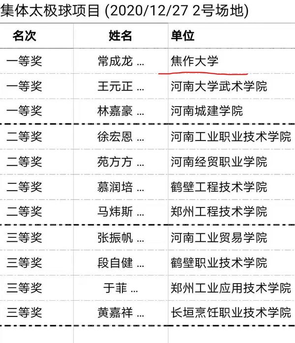 大河網訊(記者 王輝 通訊員 張繼文 張哲)2021年1月4日,記者從焦作大學獲悉,該校太極武術學院在“2020年河南省大學生線上武術比賽”中獲得佳績,該校男子、女子代表隊分別獲得乙組團體總分第2名、第3名,太極球集體項目獲得一等獎。