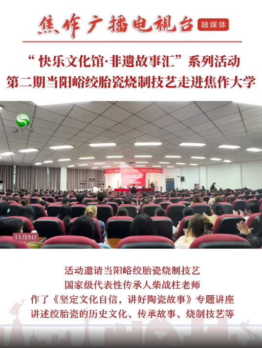 近日,焦作廣播電視臺視頻號和焦作市文化館公眾號對“當陽峪絞胎瓷燒制技藝非遺進校園活動”在我校舉辦情況進行報道。