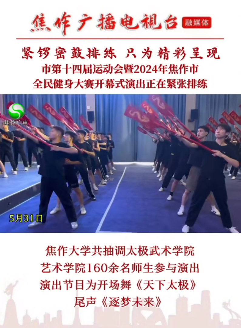 近日,焦作廣播電視臺視頻號對我校參加焦作市第十四屆運動會開幕式演職人員排練情況進行報道