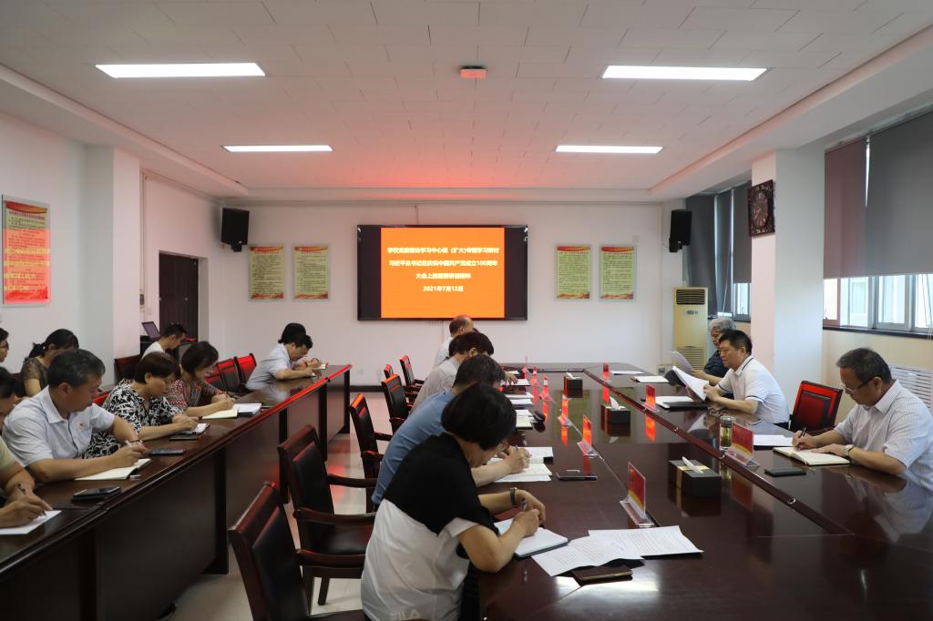 7月12日上午,我校召開黨委理論學(xué)習(xí)中心組(擴大)學(xué)習(xí)會,專題學(xué)習(xí)研討習(xí)近平總書記在慶祝中國共產(chǎn)黨成立100周年大會上的重要講話精神。校黨委理論學(xué)習(xí)中心組成員、機關(guān)黨總支各支部書記參加會議。會議由黨委書記魏曰高主持。
