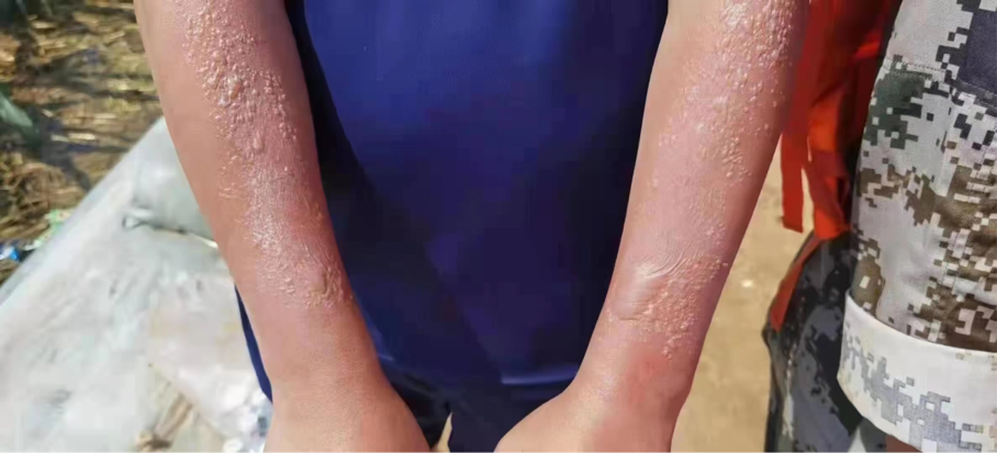 20級播音二班吳沂霖,自己家雖然沒有受災,但依然沖在一線抗洪,扛沙袋,搬物資,保衛家鄉??h。由于搬運時間過長,導致胳膊曬出了很多水泡,但他依然積極投身在抗洪救災當中,為奪取抗洪救災工作的全面勝利貢獻自己最大的力量。